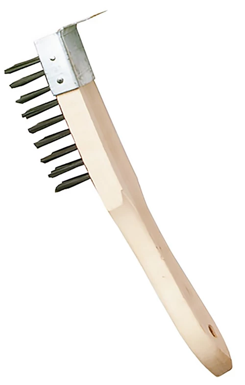 Stålborste med trärygg och skrapa