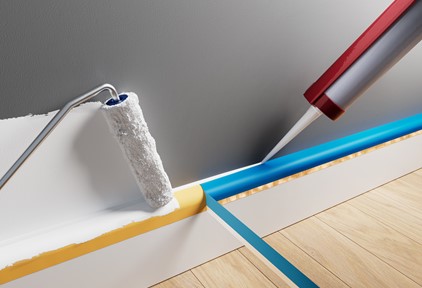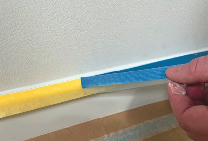 När du skall måla dörrfoder, golv eller taklister maskerar du väggen/taket/tapeten med denna lätthäftandetejpen